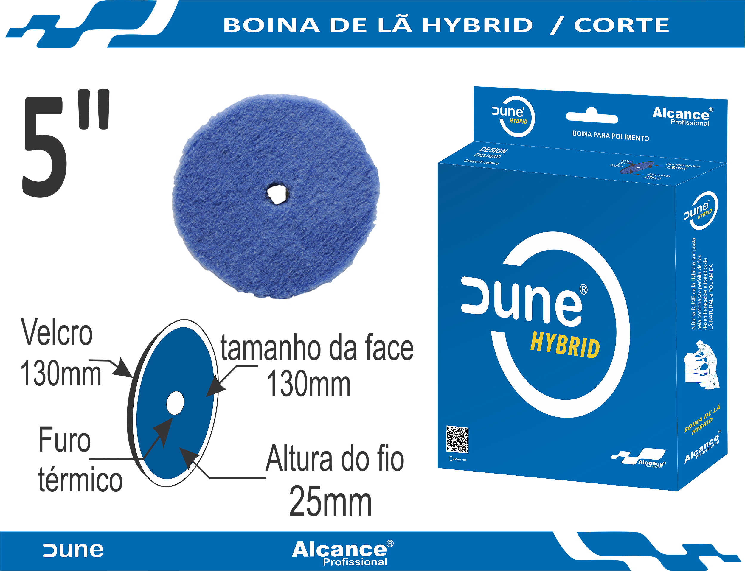 A boina DUNE de lã Hybrid e composta pela combinação perfeita de fios desembaraçados e tratados de LÃ NATURAL e POLIAMIDA. As suas fibras duplas transferem efetivamente o movimento orbital, permitindo um excelente corte com acabamento refinado. A Boina DUNE de LÃ Hybrid foram projetadas para preservar a espessura do verniz. Sua fixação de velcro® (o velcro é composto de adesivo resistente a temperatura gerada pelo equipamento) e ainda são reforçadas com costura no contorno da boina, possui um furo térmico de 15mm para evitar aglomeração de fios, acúmulo de resíduos e aquecimento. São disponíveis com medidas de 3, 5, e 6 polegadas