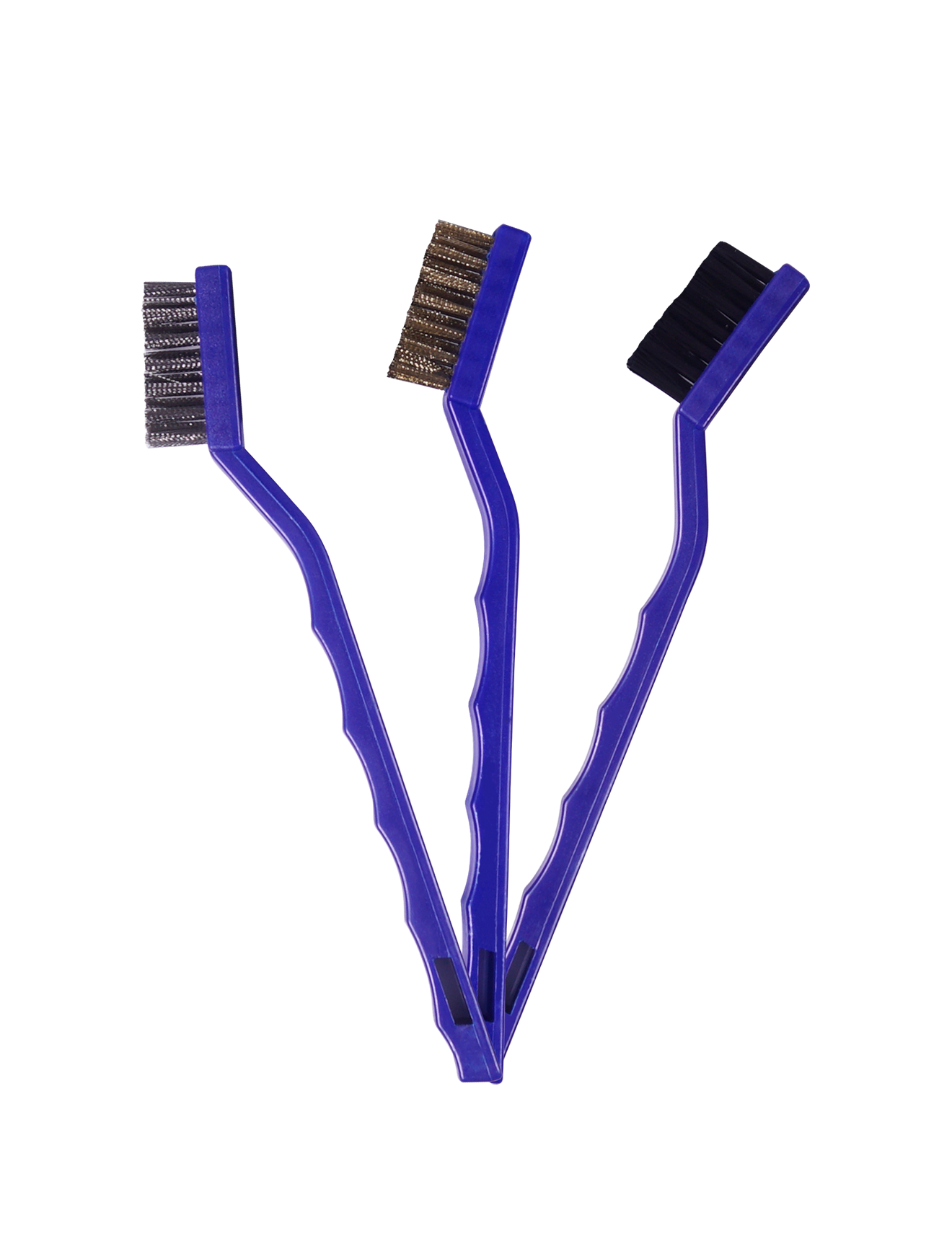 Kit com três escovas para detalhamento com diferentes tipos de cerdas: Nylon, Latão e Aço Inoxidável. Desenvolvidas para múltiplas finalidades tais como cuidados com o carro, moto, casa, oficina e limpeza de peças em geral. Todas as escovas do kit possuem design ergonômico e são de fácil manuseio.